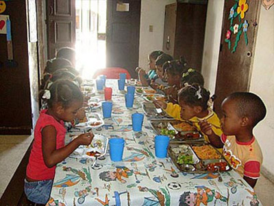Für die sozial benachteiligten Kinder im Alter von 2-5 Jahren steht frühpädagogisch geschultes Fachpersonal zur Verfügung. Die Leiterin der Kita "Kenia Dominguez Acosta" unterstützt gemeinsam mit den zuständigen Ordensschwestern die Familien bei der Erziehung und Pflege der Kinder. Das Betreuungs- und alternative Erziehungsprogramm zielt darauf ab die Grundbedürfnisse der Kinder zu befriedigen, vorschulische Lerninhalte zu vermitteln und die soziale Kompetenz der Eltern zu stärken. So wirkt sich die liebevolle, fürsorgliche und spielerische Förderung der engagierten Erzieherinnen positiv auf die kognitive, motorische und soziale Entwicklung der Kinder aus.