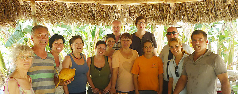 Gruppenfoto auf der Projekt-Finca: Katia Dominguez (4.v.r.) mit der Reisegruppe | |