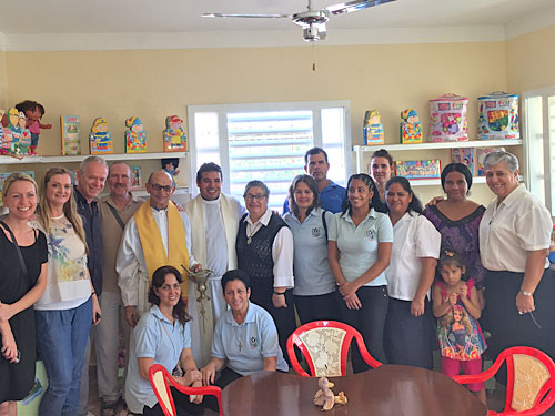 Alle Kinder mit ihren Eltern, alle Mitarbeiter und auch Pate Christoph Katschner aus Österreich, der durch eine großzügige Spende die Bereitstellung der neuen Räume ermöglichte, sowie Nicole Engesser von avenTOURa waren zu Gast, als Pater Felix und Pater Ariel die neue Kita einweihten. Der auf Kuba spezialisierte Reiseveranstalter avenTOURa steht bereits seit den Anfängen mit der Bernhard Adolph-Stiftung und ihren Verantwortlichen in vertrauensvoller und freundschaftlicher Verbindung und hat bedeutend zur Finanzierung des Umbaus und der Einrichtung der neuen Räume beigetragen.