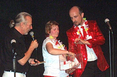 Moderator Michael Berger leitete mit Bernhard Adolph die große Tombola der Fiesta und Glücksfee "Rosi" zog die Gewinner des Abends. Unter anderem gab es ein Wochenende Cabriofahren von Basdorf und ein Reisegutschein der Firma avenTOURa zu gewinnen.